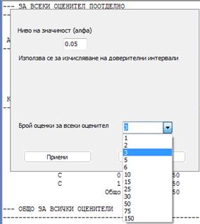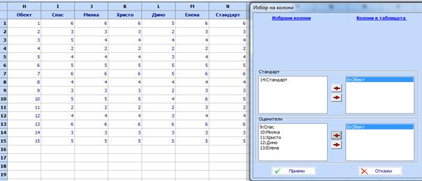 съвпадат оценките на операторите. За целта от менюто се извиква програмата за