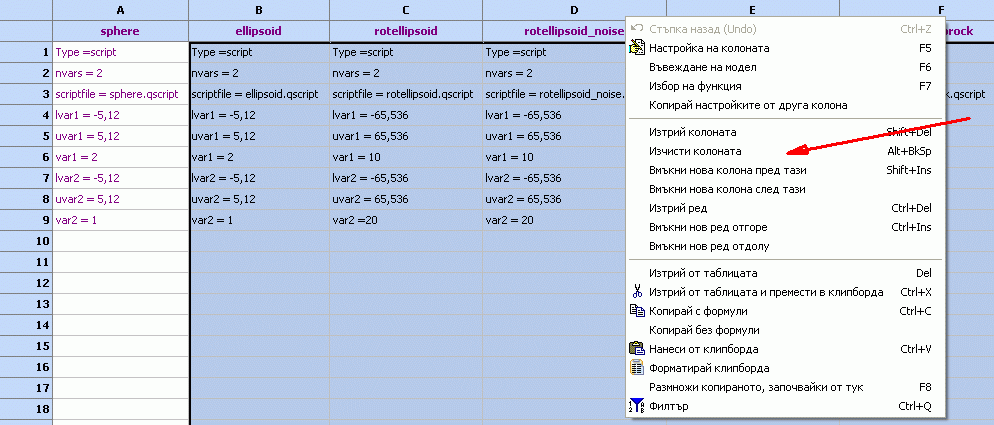 След извикване на файла трябва да изтриете всичко излишно, така че да работите с това което ще остане. За да направите това, изберете всички модели без първия, кликнете десния бутон и използвайте „Изчисти колона”: