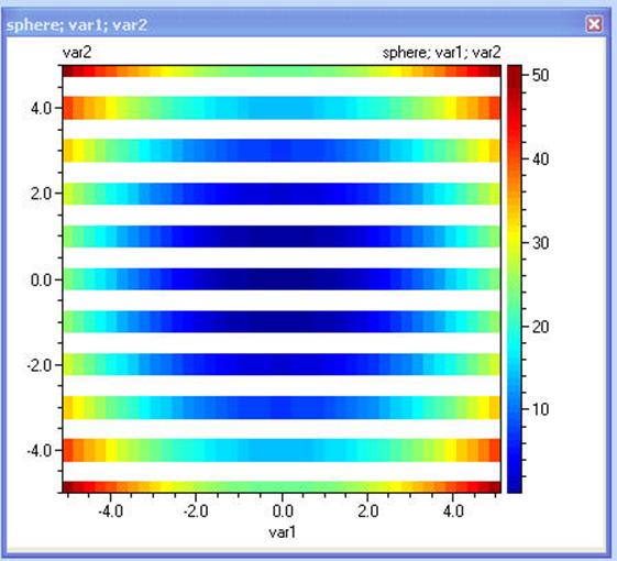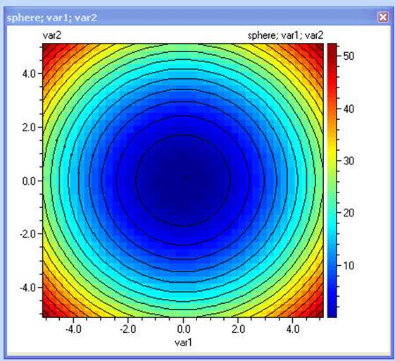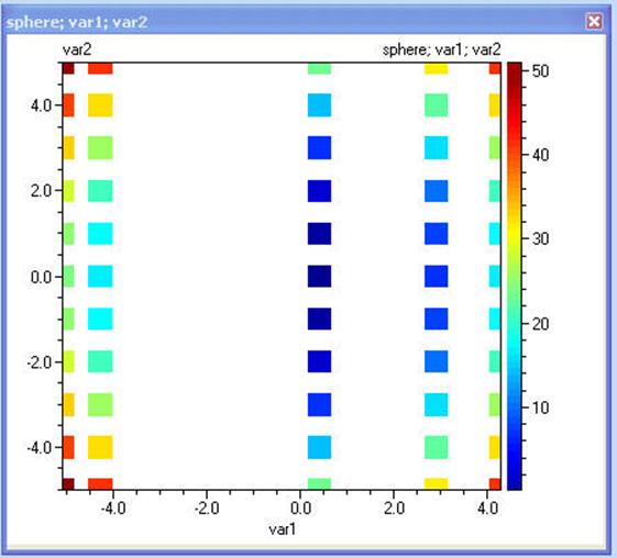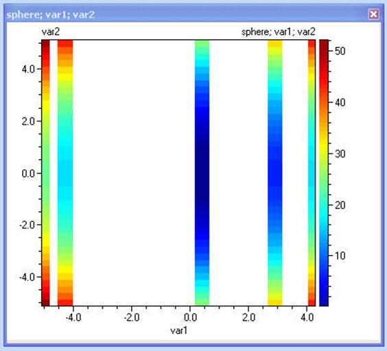 При създаването на контурна диаграма за този модел компютърът ще изчисли целевата функция при допустимите дискретни стойности на var1 и ще третира var2 като непрекъсната: