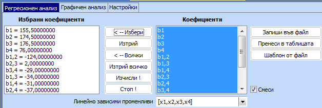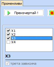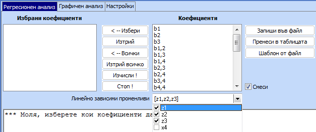 Освен това чрез падащото меню се посочва кои променливи са линейно зависими: