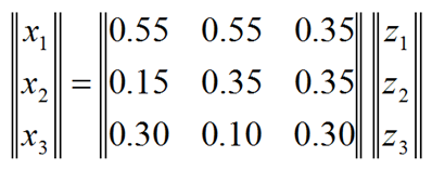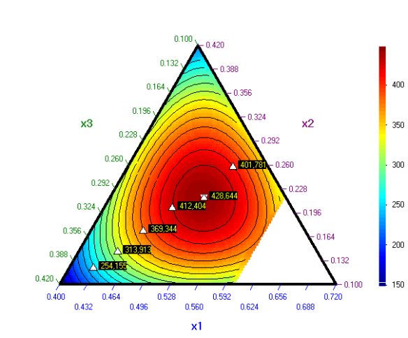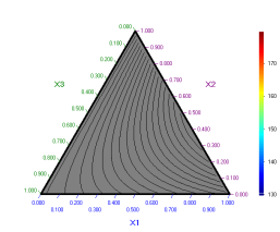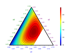 При експеримента са изменяни три компоненти на смес, сумата на които трябва да е винаги 1: