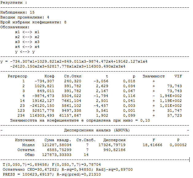 QstatLab дава възможност да се построяват модели, включващи всички линейни членове и произведения на факторите до 4 ред от типа