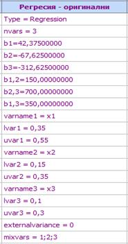 · Използват се приведени регресионни модели. В тях липсва свободен член и няма фактори на втора или по-висока степен. Има произведения на фактори: