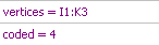 Редът vertices = I1:K3 инструктира програмата, че oт I1 до K3 са записани координатите на върховете на ограничената подобласт. Това се използва при оптимизацията и в графиката за изчисляване на координатите на точките в натурален мащаб. Това позволява графиката да се представи в натурални променливи.