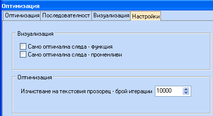 Ако след кликване на "Настройки" се махне маркировката на "Само оптимална следа - функция" можем да видим всички стойности на целевата функция.