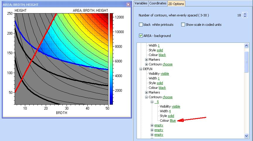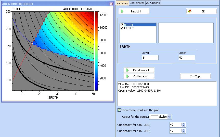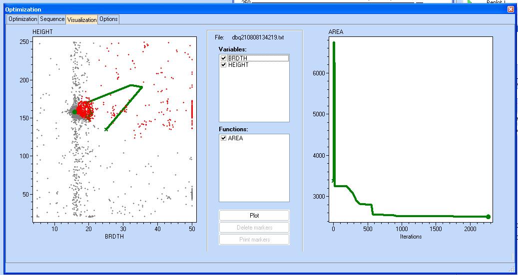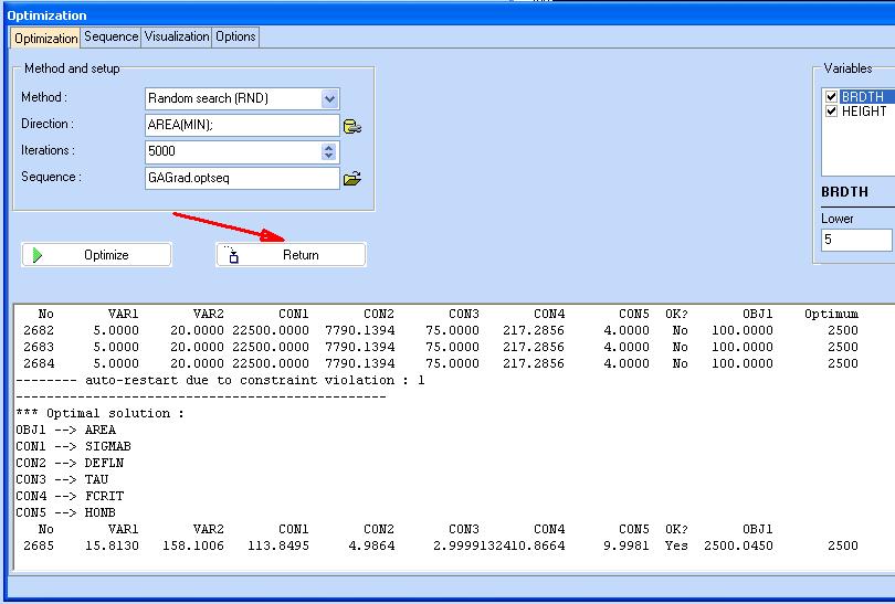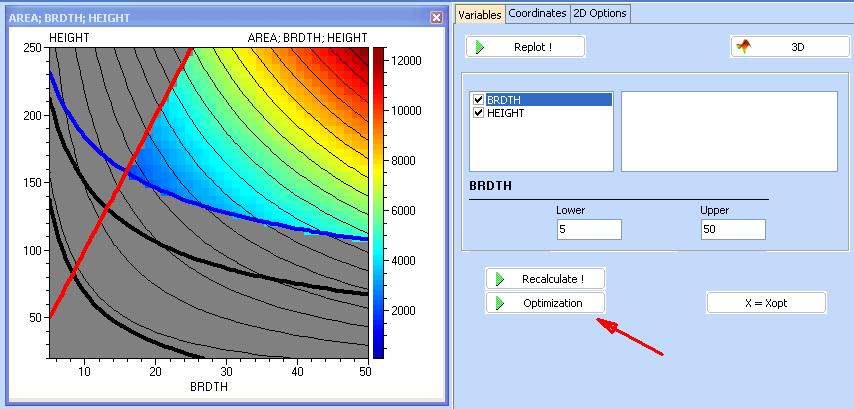 You will find out that only the Deflection (blue) and the HonB (red) constraints are active. Click Optimization (in the ‘Variables’ section) to initiate the optimization module: