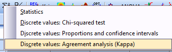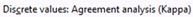 Second version (discrete data with ordered categories). When data are ranked in 3 or more ordered categories, Kappa statistics can also be used for assessment agreement. Ordered discrete data differ from attributes because in this case the ordering is important. For example if students can get marks 2,3,4,5 and 6 it is accepted that 3 is more than 2; 4 is more than 2 and 3; 5 is more than 2,3,4; and 6 is more than 2,3,4 and 5.