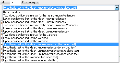 Use the "Charts/Basic statistics" option to initiate this module. Choose 'x1' and click OK; Answer 'yes' and choose 'y1'