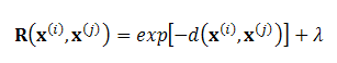 If x is close to x(i), then these points are correlated and the predicted response will be strongly influenced by the response at x(i). Whereas if the points are far apart, the correlation is small and the predicted response will only be weakly influenced by the response at x(i).The prediction itself is given by