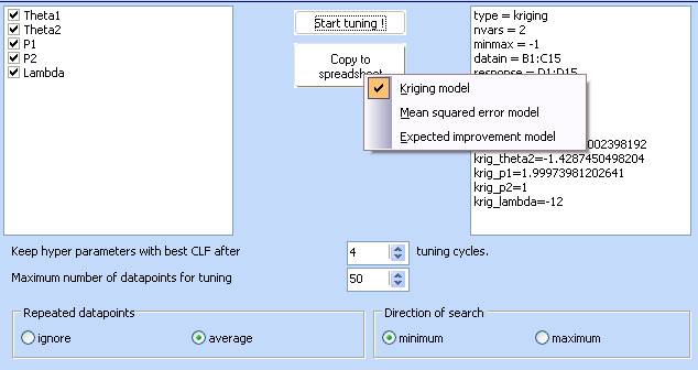 · Direction of search. This is important for the calculation of the expected improvement function as it defines where does the function ‘improve’. Ignore this setting if you do not plan to use the expected improvement function.