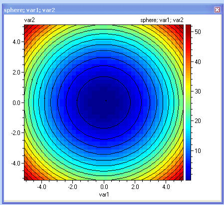 Note that in this example only var2 is defined as discrete, and therefore var1 is treated as continuous, which is shown on the following contour plot:
