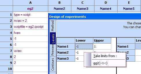 3. Right click in the Limits table, located in the ‘Levels’ tab. Then choose ‘eg2(:-1-:)’ . This will copy the limits from the model definition