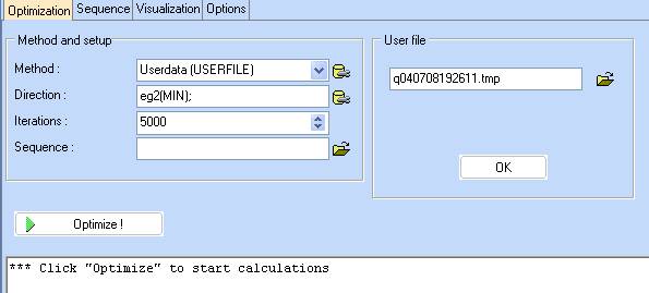 7. In the ‘Optimization’ dialog, click OK and then Optimize: